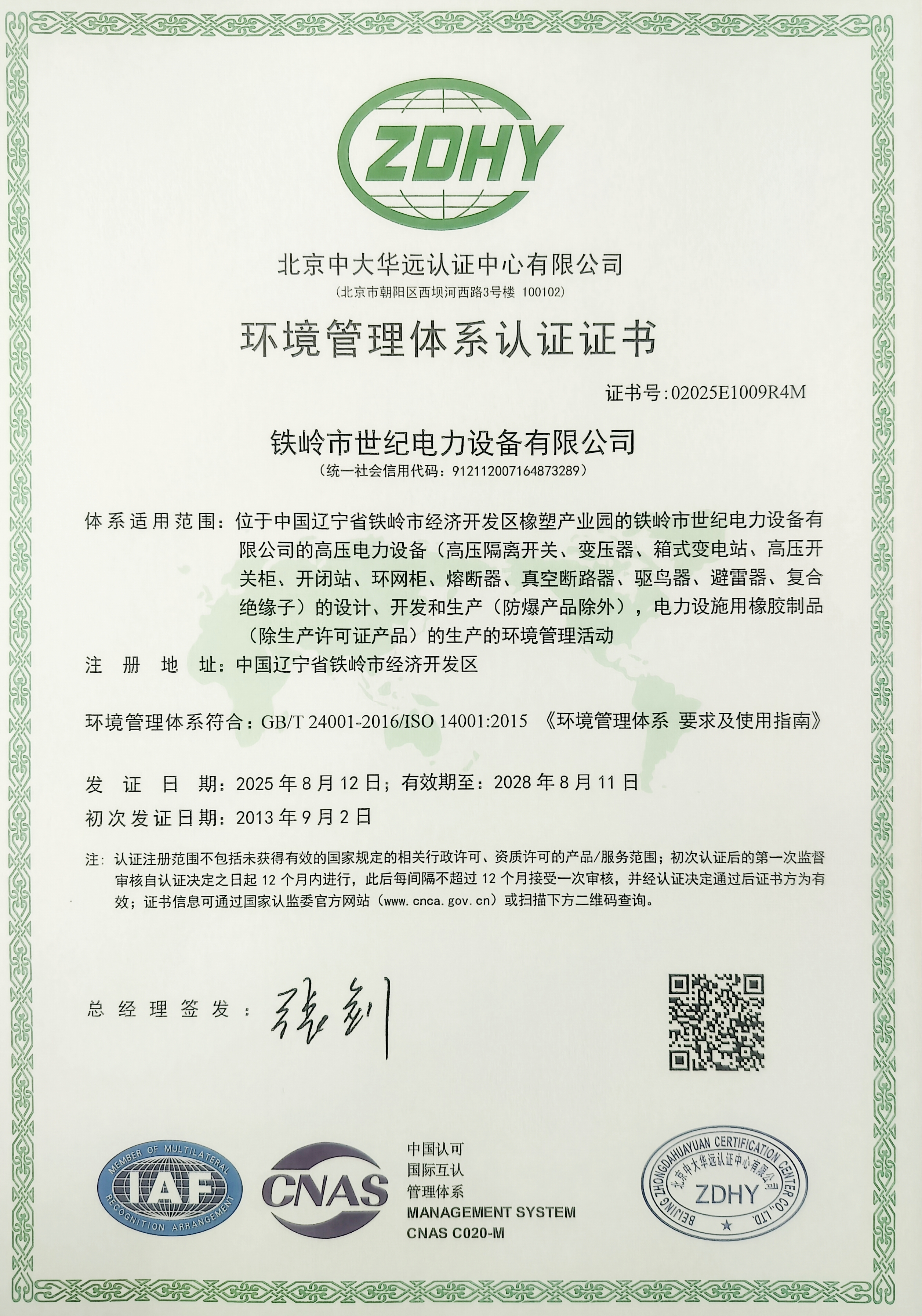 鐵嶺市世紀(jì)電力設(shè)備有限公司是集科研開發(fā)、生產(chǎn)制造、用戶服務(wù)于一體的國家高新技術(shù)企業(yè),始建于1999年,位于鐵嶺經(jīng)濟(jì)開發(fā)區(qū),占地面積5萬余平方米,建筑面積2萬余平方米。主要從事國家電網(wǎng)配套戶外高低壓隔離開關(guān)、電力電纜、變壓器成套裝置、高低壓開關(guān)柜、箱式變電站、絕緣子等產(chǎn)品的研發(fā)、生產(chǎn)和銷售。公司現(xiàn)有國家發(fā)明專利6項(xiàng)、實(shí)用新型專利9項(xiàng),公司通過了ISO9001國際質(zhì)量管理體系認(rèn)證、ISO14001環(huán)境管理體系認(rèn)證和ISO 45001職業(yè)健康安全體系認(rèn)證。
